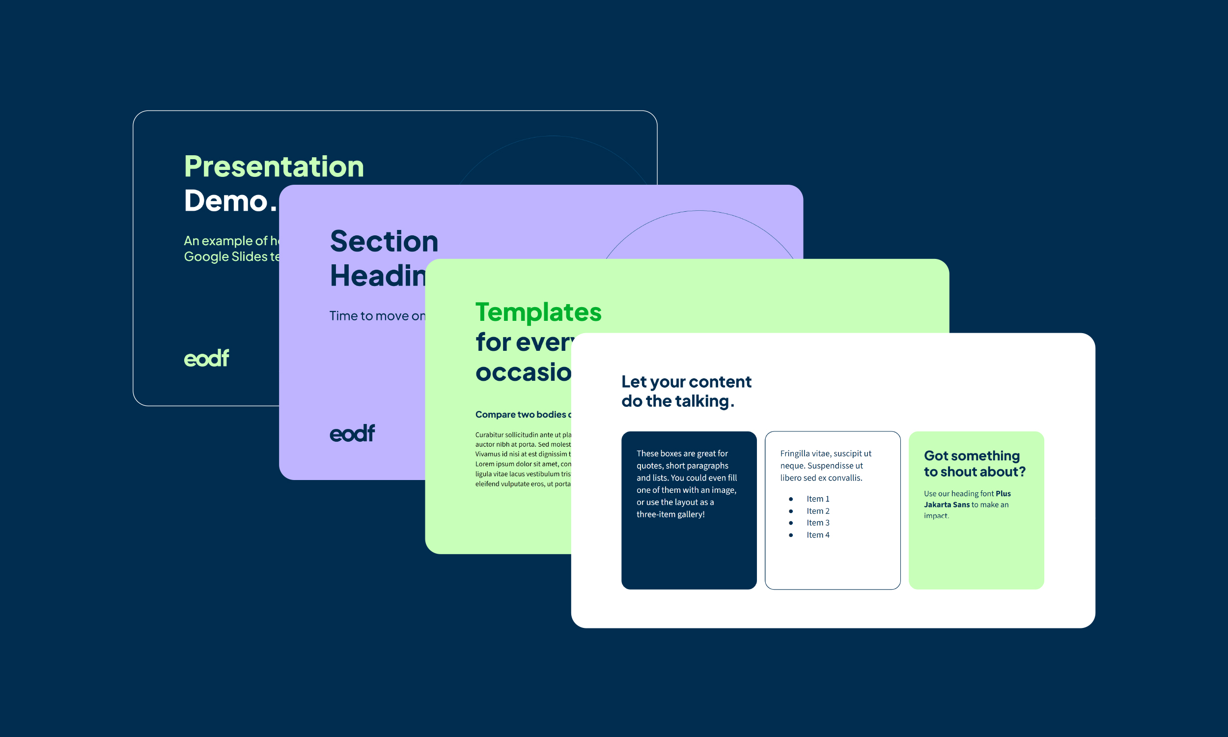 Wrangling the strategic and technical foundations of this brief, the team at Fat Panda used these creative assets to develop a new EODF website, newsletters, publications and email templates.