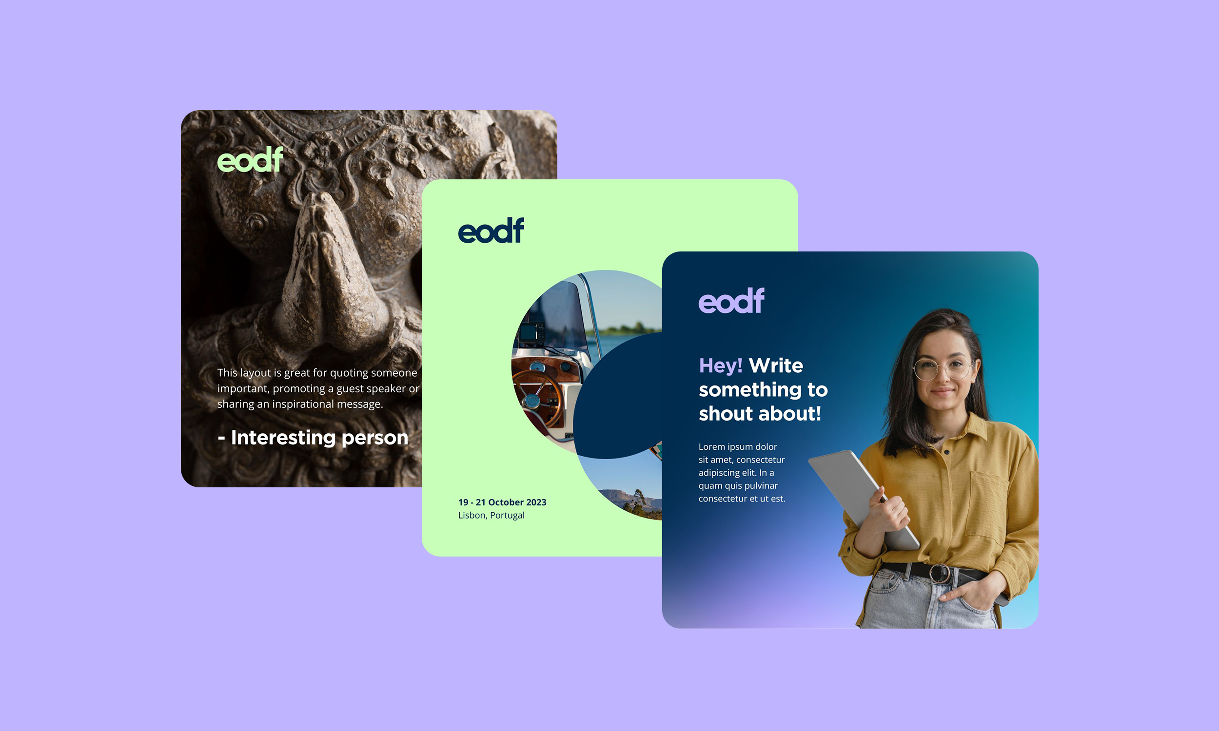 Our involvement began with a new EODF logo, drawing inspiration from their existing brand and focus on sustainability, business growth and interdisciplinary collaboration. The client requested a minimal, abstract interpretation of these themes accompanied by a revitalised colour palette and contemporary typography.